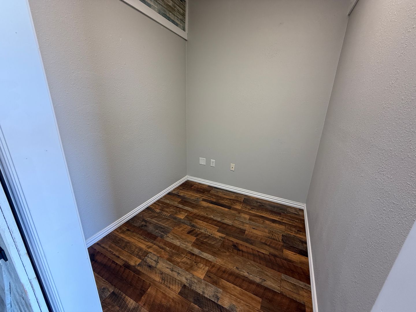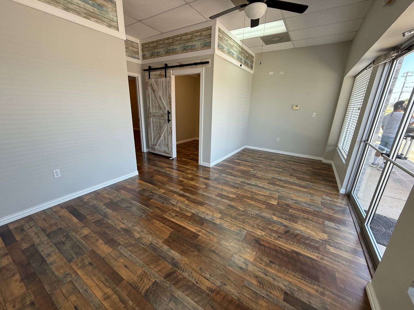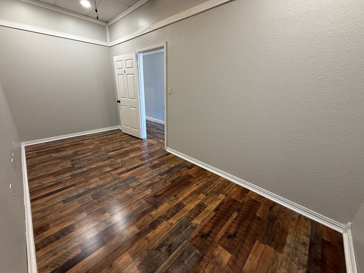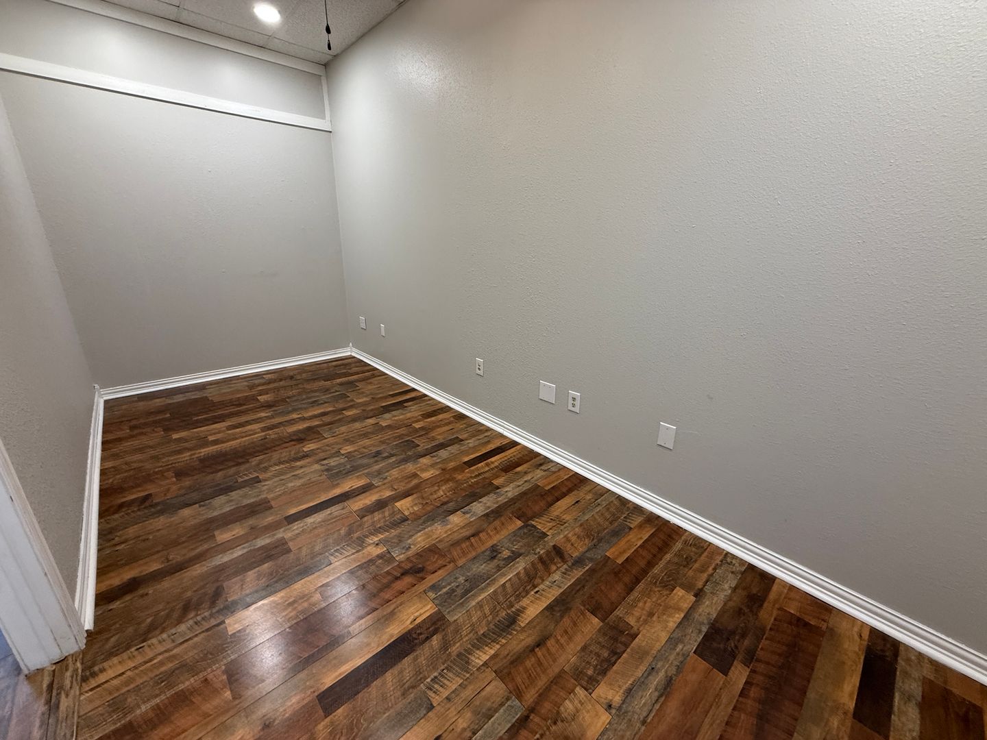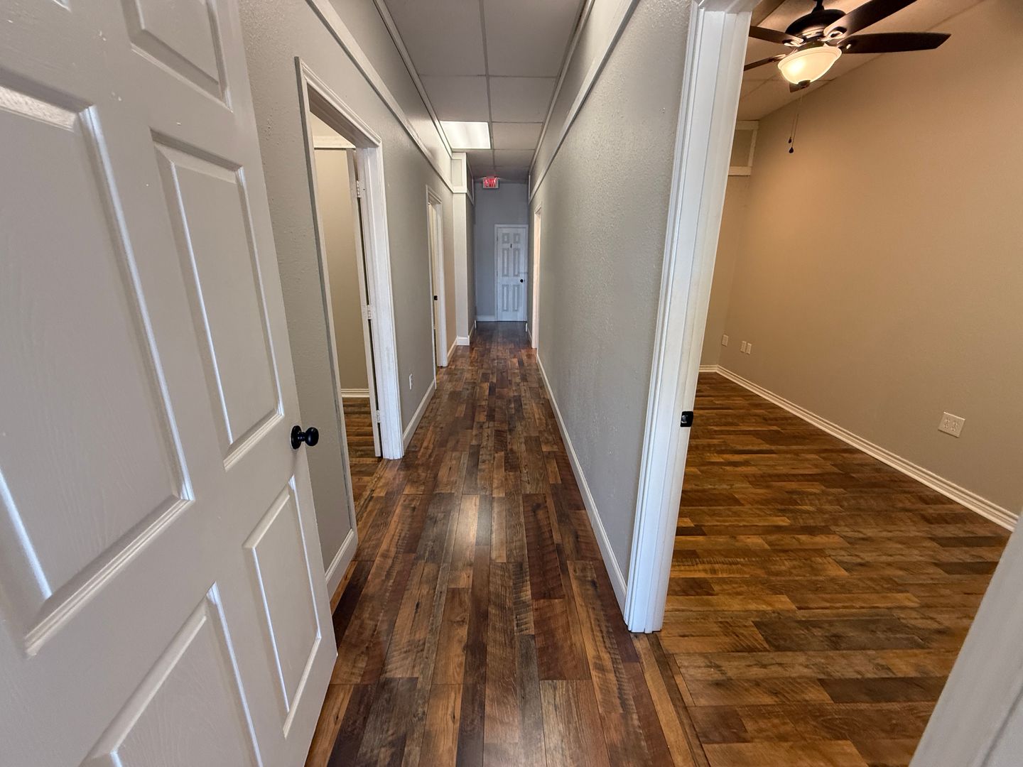 DESCRIPTION: Available Now! This 1,000+/- square foot office suite is nicely finished with gorgeous wood laminate floors, textured and painted sheetrock walls, drop ceiling with florescent lighting and lit ceiling fans with dimmable lighting. The property is very visible on Stan Schlueter which boasts over 30,000 cars per day according to TXDOT. The attractive office is vacant and ready to show.